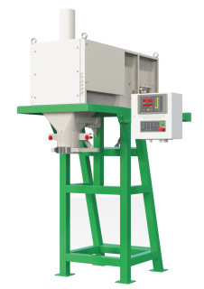 Фасовка средней производительности плохо сыпучих продуктов (мука, крахмал, премиксы, комбикорм и др.) с системой уплотнения продукта.